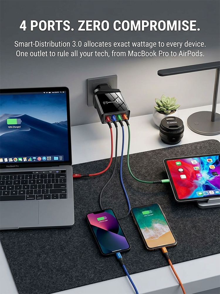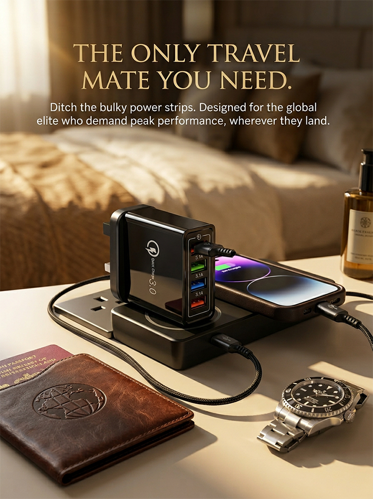 Four-Port Travel Charger for Extended Phone Battery Life